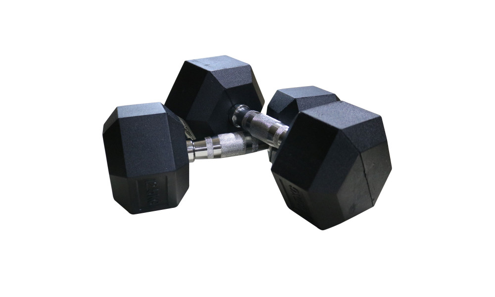 Гантель обрезиненная с хромированной ручкой. Вес гантели 47,5 кг, в комплекте 2 штуки (пара). Ручка с насечками для предотвращения скольжения. Гексагональная гантель – обрезиненная модель удобной конструкции. Гантель имеет много граней и не катается по полу. Обрезиненная поверхность не царапает пол при ударе. Гантели используются в фитнесе, лечебной физкультуре, бодибилдинге и других спортивных тренировках. Внутренний материал: сталь Внешний материал: резина Материал хвата: сталь Длина хвата: 12,5 см Диаметр хвата: 2,8 см Размер гантели: Вес гантели (1 шт): 47,5 кг Размер упаковки (2 шт / комплект): Объем упаковки: Вес брутто: Бренд: DFC Страна производства: Китай Гарантия: 12 месяцев