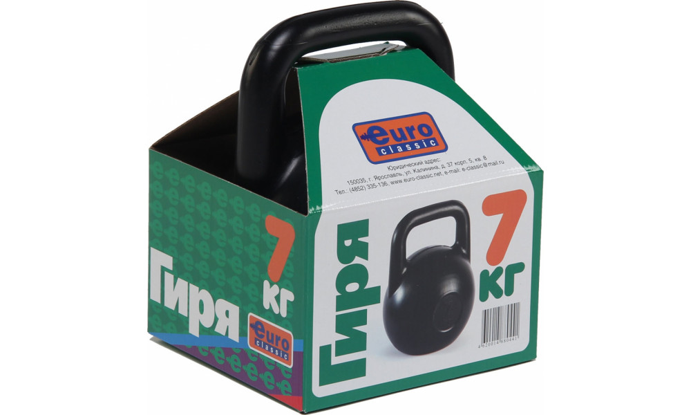 Гиря виниловая 7 килограмм. Гиря с виниловым покрытием не царапает пол, создает меньше шума при случайном падении. Тип гиря одноручная насыпная Вес гири 7 кг Материал пластик Наполнитель минеральный, металлический Цвет черный Страна производства Россия Размеры упаковки-190х180х130мм