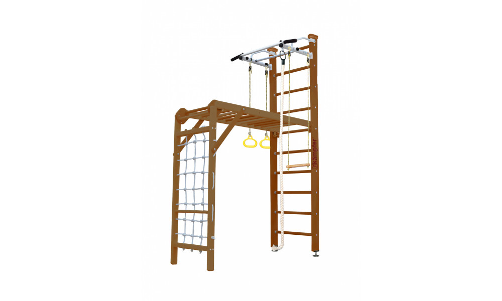 Домашний спортивный комплекс Kampfer Union Ceiling это новинка на основе одной из самых популярных моделей из линейки деревянных ДСК Kampfer в цветовой гамме на выбор, что позволяет подобрать нужный оттенок под дизайн помещения. Модель Kampfer Union Ceiling включает в себя классическую шведскую стенку, металлический турник и набор из самых популярных навесных аксессуаров канат, кольца, трапецию, а также новинку уголок сетку-рукоход. Крепкий металлический турник выдерживает нагрузку до 120 кг, подходит как детям так и взрослым. Навесное оборудование Kampfer на прочных тросах выдерживает нагрузку до 100 кг. Особенностью шведской стенки Kampfer Union является уголок сетка-рукоход имеющий с одной стороный веревочную сетку, а с другой деревянную лестницу. Малышам очень нравится - лазить по веревочной сетке и лесенке. Уголок сетка-рукоход предназначен для раннего развития детей в возрасте от 7 месяцев до 4 лет, устанавливается на ступени шведской стенки и выдерживает максимальную нагрузку до 50 кг. Уголок сетку-рукоход также можно установить отдельно на пол и использовать рукоход как лестницу.