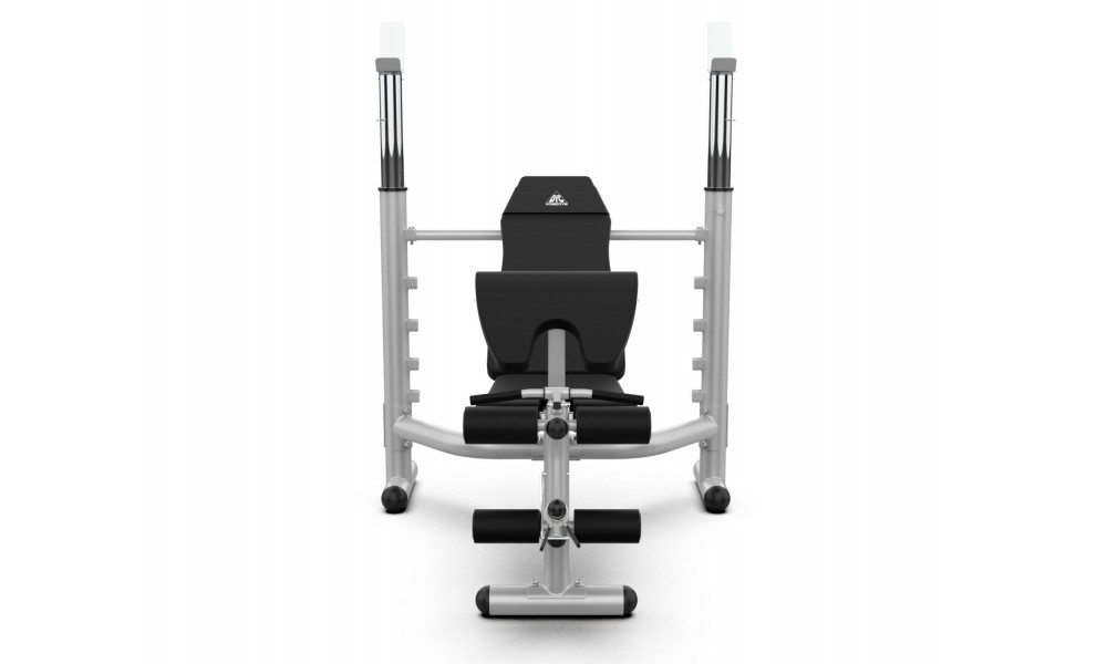 Универсальная скамья со стойками под штангу DFC D748 - самая многофункциональная в линейке. Она отличается от D745 и D742 тем, что стойки выполнены из хромированной стали, спинка и сиденье регулируются по углу наклона с большей амплитудой, а под сиденьем предусмотрен держатель для гантелей. В качестве утяжелителя используются диски диаметром 26 мм и 51 мм (приобретаются отдельно). Максимальная нагрузка на хромированные стойки допустима до 110 кг. Благодаря хромированному покрытию, они прослужат дольше и будут меньше подвергнуты коррозии. Стойки под штангу с металлическими замками регулируются по высоте на 5 уровней. Спинка скамьи регулируется на 5 уровня по углу наклона, а сиденье - на 3 уровня. Максимально допустимая нагрузка на скамью составляет 170 кг. Под сиденьем расположен металлический держатель для гантели. Парта для бицепса регулируется по высоте на 3 уровня. Максимальная нагрузка на парту - до 70 кг. Съёмная ручка с нескользящими накладками используется для упражнений на бицепс. Валики диаметром 7 см используются для прокачки ног. Съёмная втулка утяжелителя позволит использовать диски диаметром 26 и 51 мм на выбор.